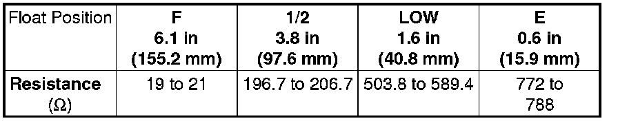 If you do not get the following readings, replace the fuel gauge sending unit Fuel Pump/Fuel Gauge Sending Unit Replacement.