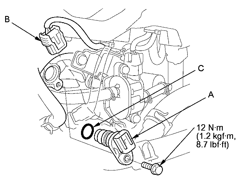 Install the parts in the reverse order of removal with a new O-ring (C).