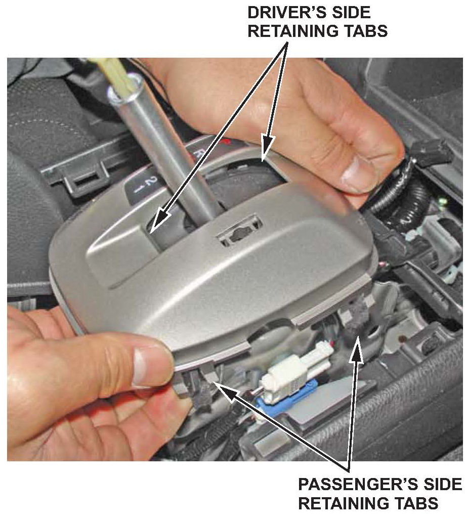 7. Type B shift lever: Remove the A/T gear position indicator panel by gently prying up on the four retaining tabs that secure the panel to the base.