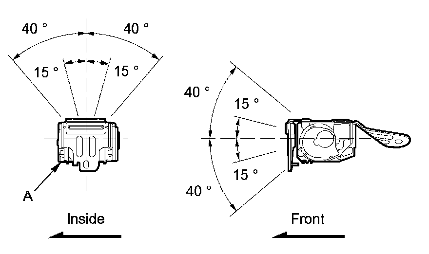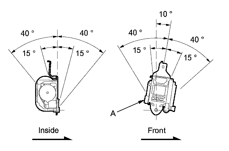 2. Make sure that the seat belt does not lock when the retractor (A) is leaned slowly up to 15 ° from the mounted position. The seat belt should lock when the retractor is leaned over 40 °. Do not attempt to disassemble the retractor.