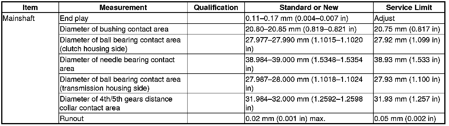 Mainshaft Specification(s) (M/T)