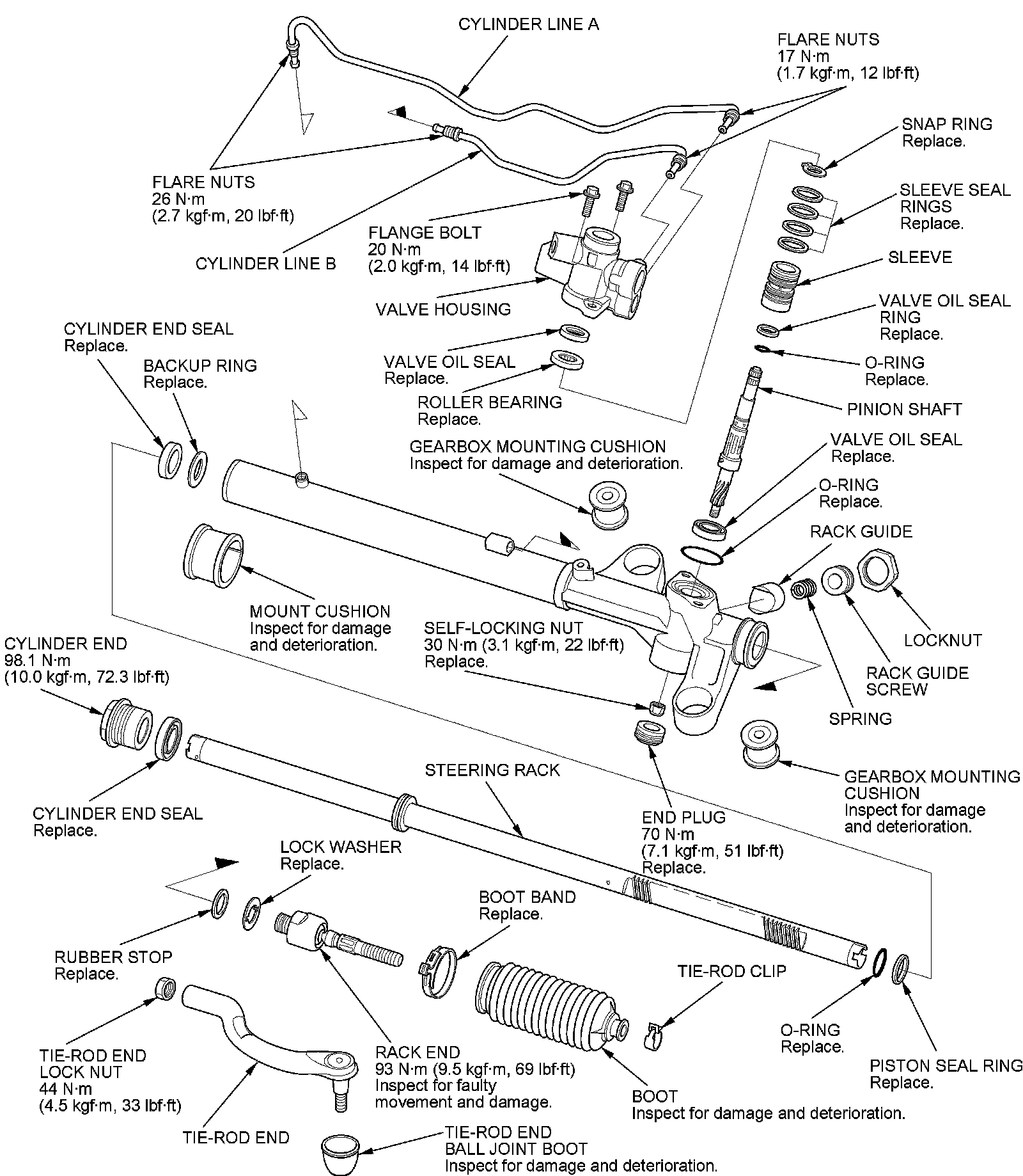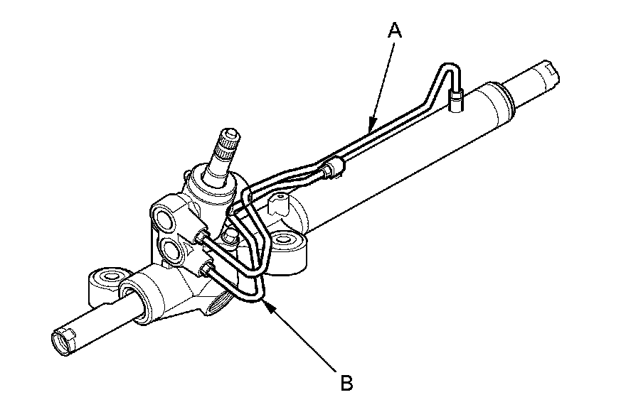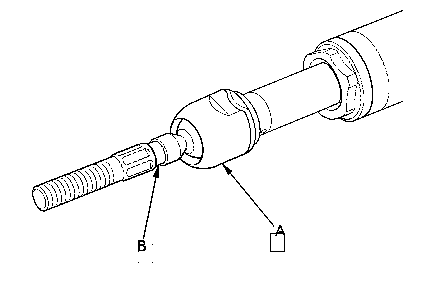 64. Coat the inside surface of the cylinder end (A) with power steering fluid, then install the cylinder end by screwing it into the cylinder (B). Tighten the cylinder end to the specified torque.