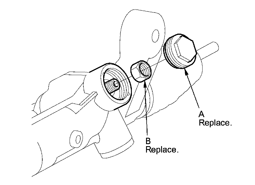 10. Loosen the locknut (A), then remove the rack guide screw (B).