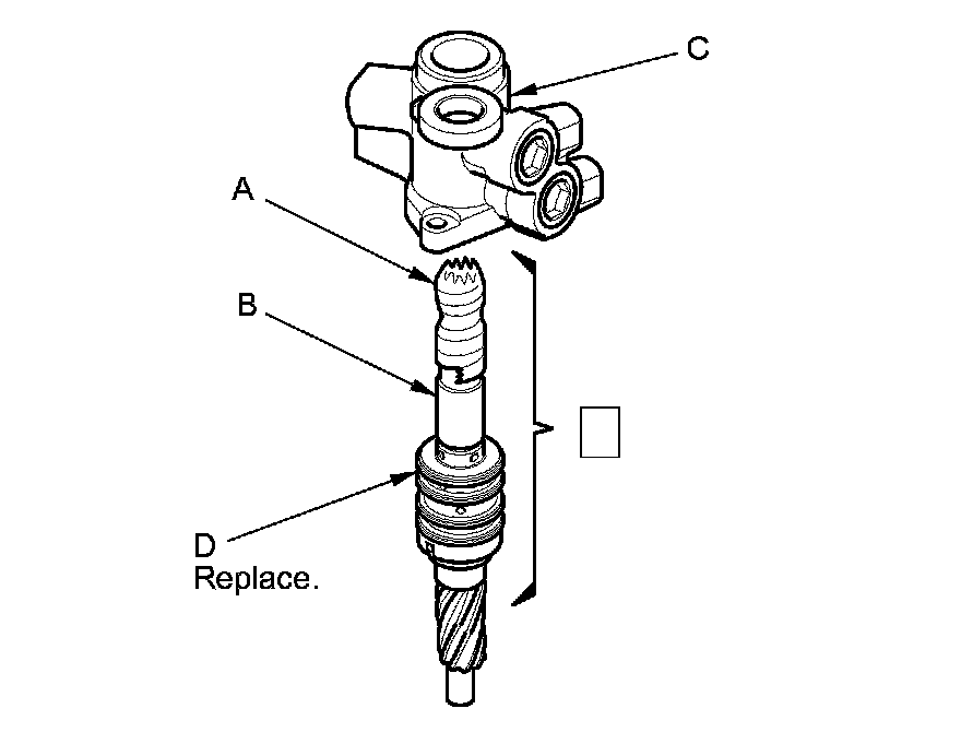 45. Insert the pinion shaft/sleeve into the valve housing (C). Be careful not to damage the valve seal rings (D).