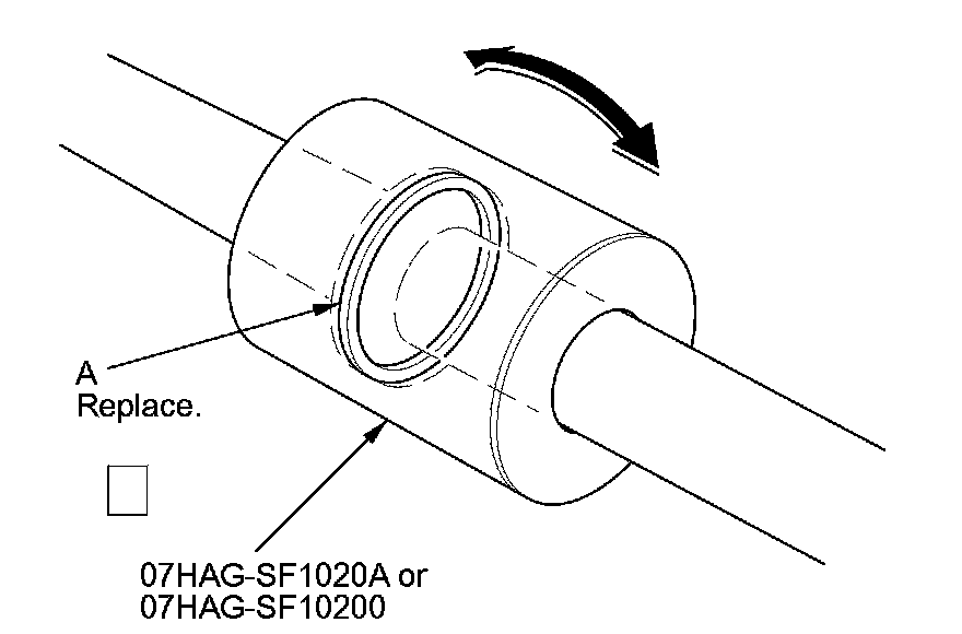 21. Turn the cylinder end seal remover attachment so it fits through the rack guide hole of the gearbox housing, then position the seal remover on the backup ring (A). Make sure that the seal remover is securely positioned on the backup ring.