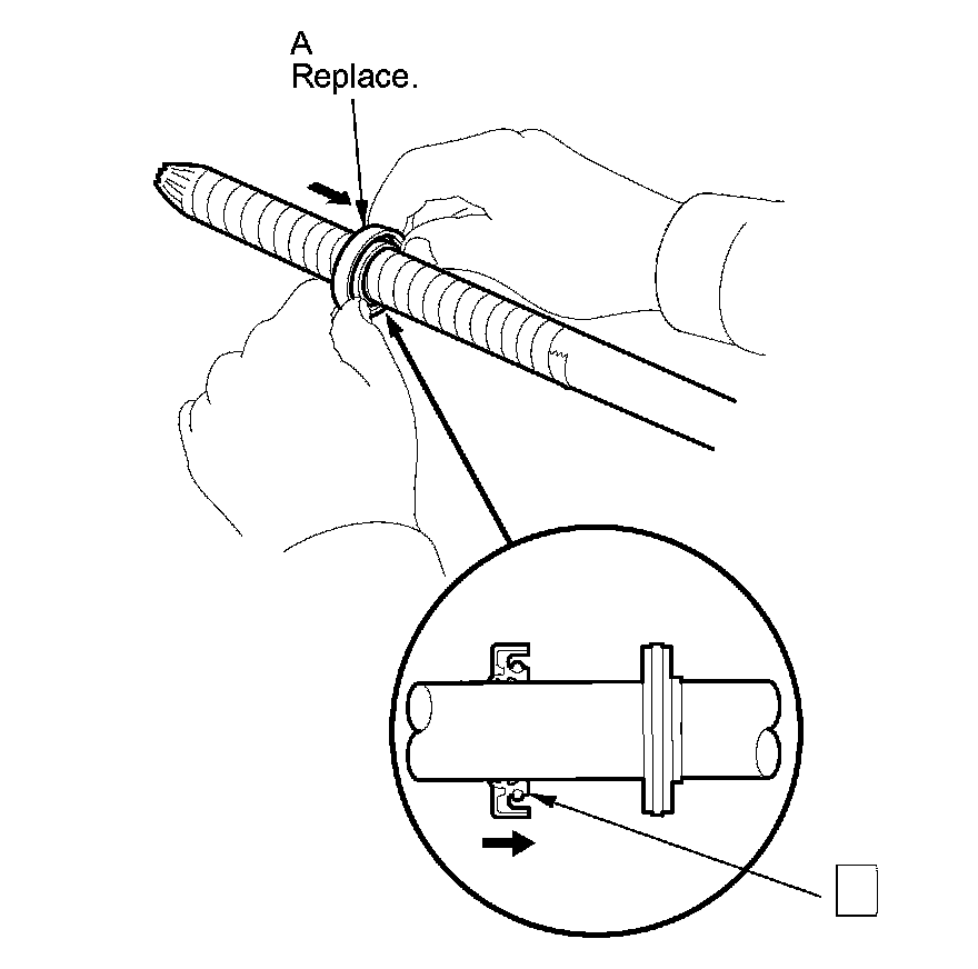 32. Apply vinyl tape (A) to the splines and stepped portion of the shaft, and coat the surface of the vinyl tape with power steering fluid.