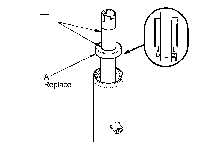 28. Using a cutter or an equivalent tool, cut and remove the four seal rings (A) from the sleeve. Be careful not to damage the edges of the sleeve grooves and outer surface when removing the seal rings.