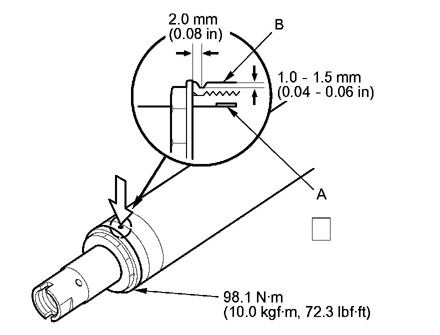 83. After tightening, use a drift to stake (A) the gearbox housing shoulder against the end plug (B).
