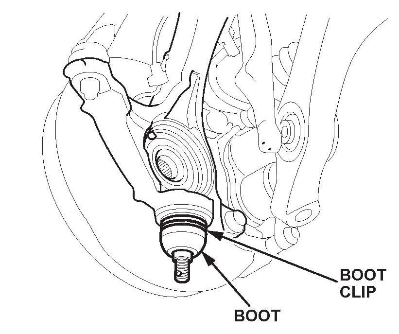 27. Remove the boot clip, then remove the boot off the ball joint, and wipe the grease off the exposed portion.