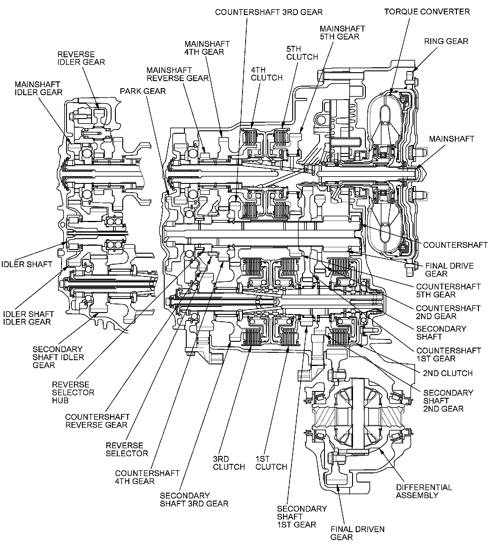 - 5th gear engages/disengages with the mainshaft by the 5th clutch.