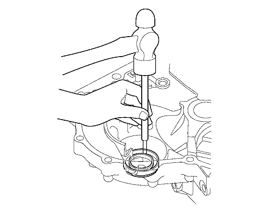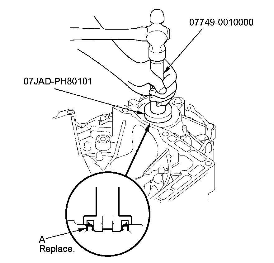 4. Install a new oil seal (A) flush with the torque converter housing using the driver handle and the oil seal driver attachment.