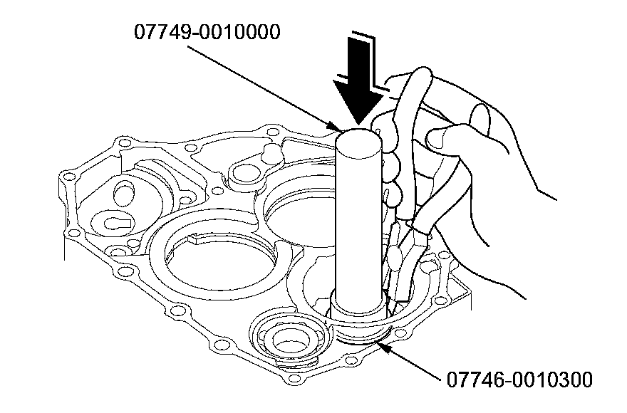 2. To remove the mainshaft bearing and the countershaft bearing from the transmission housing, expand each snap ring using snap ring pliers, then drive the bearing out using the driver handle and the 78 x 80 mm attachment.