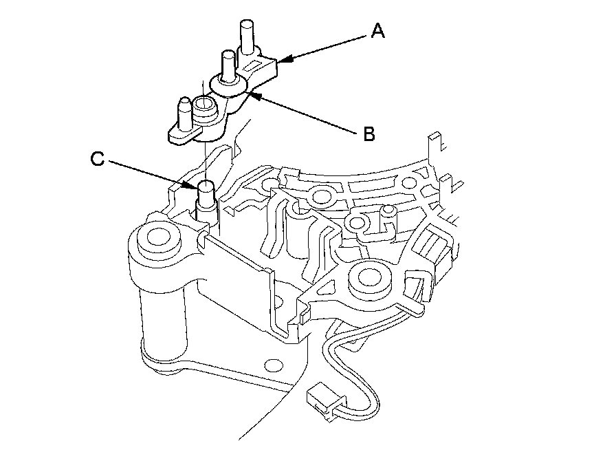3. Apply silicone grease to the pin (C) of the shift lever bracket, then install the shift lock stop over the pin.