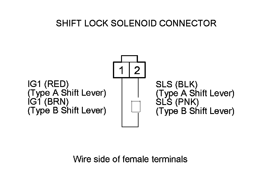 Check for a blown No. 5 (7.5 A) fuse in the driver's under-dash fuse/relay box. If the fuse is OK, repair open in the wire between the shift lock solenoid connector and the driver's under-dash fuse/relay box.�