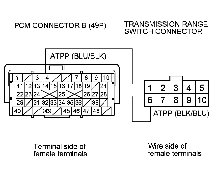 Repair open in the wire between PCM connector terminal B14 and the transmission range switch connector.�