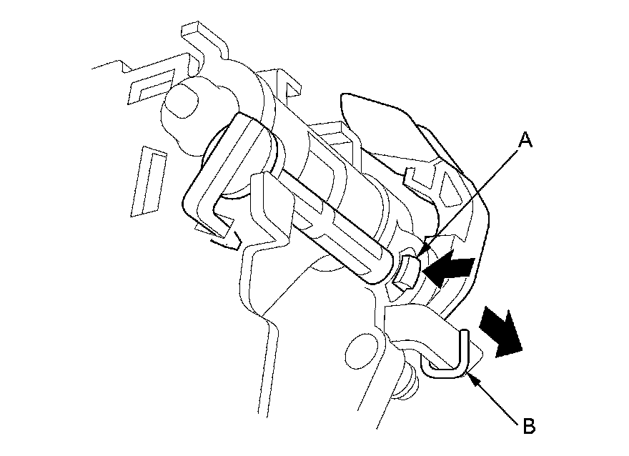 8. Release the lock (A) of the shift lock release, and remove the shift lock release and the release spring (B).