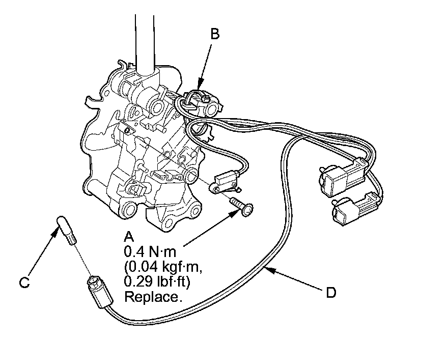 11. Install a new park pin switch/A/T gear position indicator panel light harness, and secure the park pin switch with a new screw.