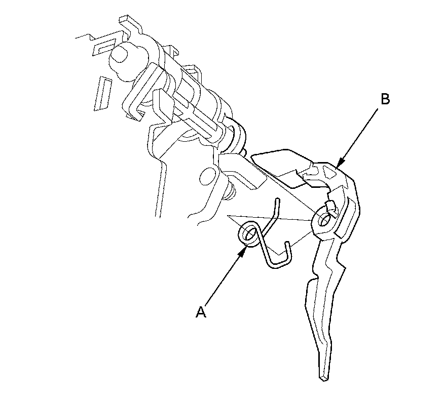 14. Install the release spring (A) in the shift lock release (B).