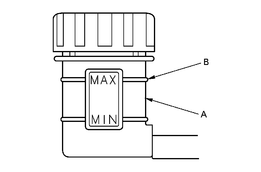 2. Make sure the brake fluid level in the clutch reservoir (A) is at the MAX (upper) level line (B).