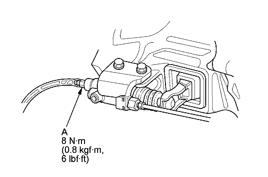 4. Make sure there is an adequate supply of fluid in the reservoir, then slowly push the clutch pedal all the way down. Before releasing the pedal, have an assistant temporarily tighten the bleeder screw. Loosen the bleeder screw, and push the clutch pedal down again. Repeat this step until no more bubbles appear at the clear tube.