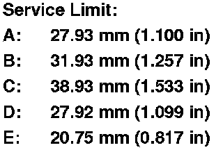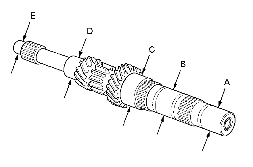 1. Inspect the gear and bearing contact areas for wear and damage, then measure the mainshaft at points A, B, C, D, and E. If any part of the mainshaft is less than the service limit, replace it.