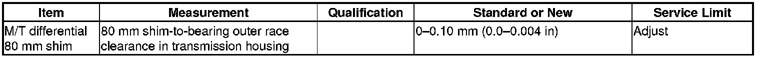 M/T Differential 80 mm Shim Specification(s) (M/T)