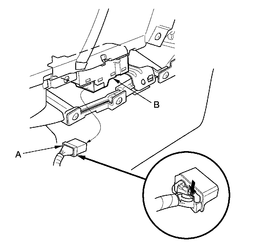 2. Disconnect the 37P connector (A) from the passenger's power window switch (B).