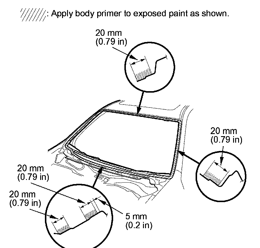 - Never touch the primed surfaces with your hands. If you do, adhesive may not bond to the windshield properly, causing a leak after the windshield is installed.