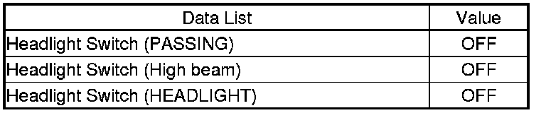 12. Select LIGHTING from the BODY ELECTRICAL system select menu, then enter the DATA LIST.
