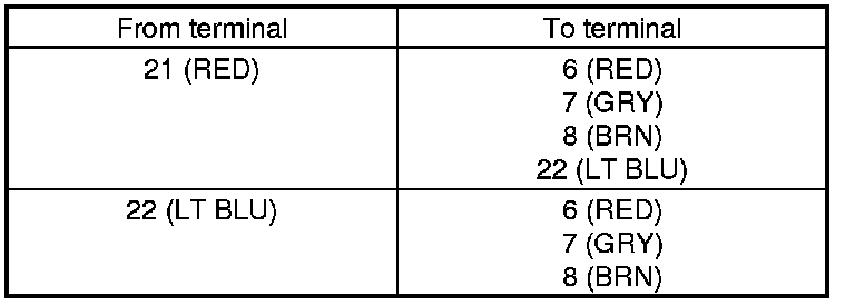 21. Check for continuity between driver's under-dash fuse/relay box connector R (24P) terminals as shown: