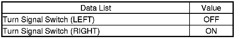 6. Check each turn signal switch position value with the DATA LIST menu.