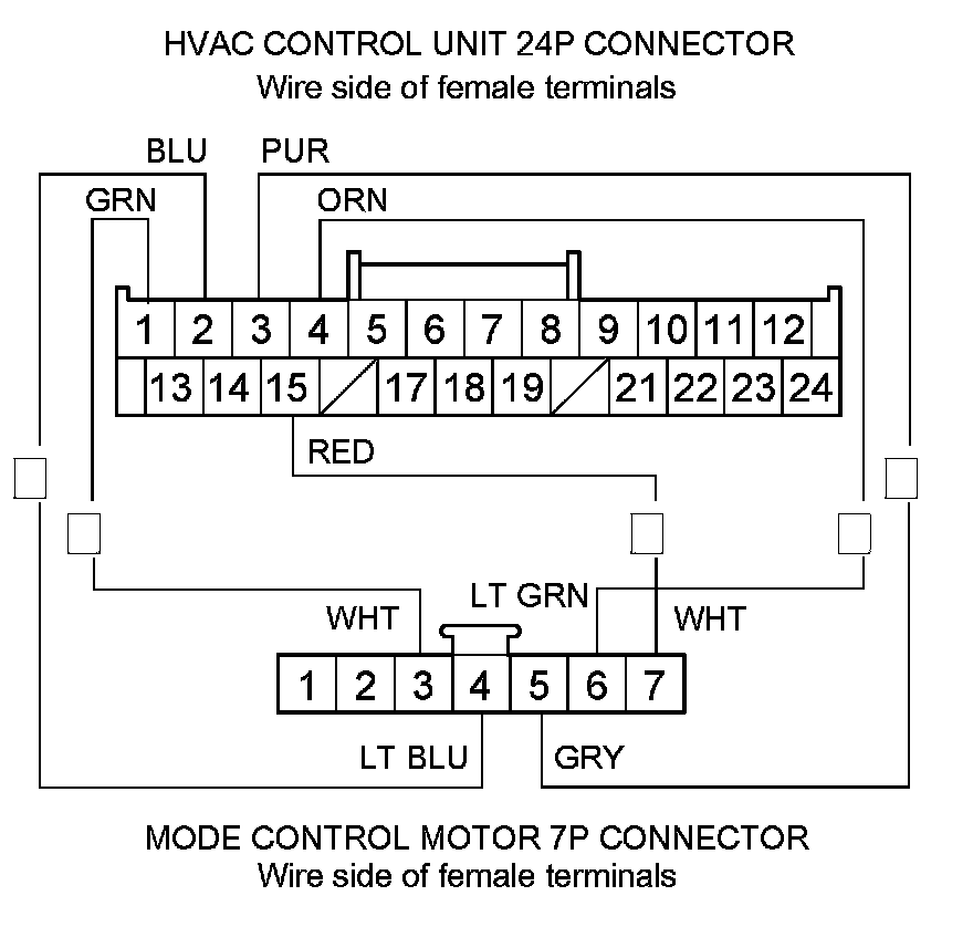Check for loose wires or poor connections at the HVAC control unit 24P connector, and at the mode control motor 7P connector. If the connections are good, substitute a known-good HVAC control unit, and recheck. If the symptom/indication goes away, replace the original HVAC control unit HVAC Control Unit Removal/Installation.�