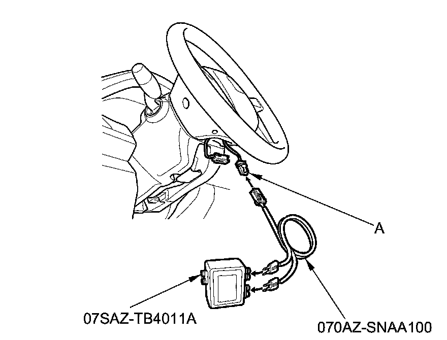 6. Remove the access panel from the steering wheel Service and Repair, then disconnect the cable reel 4P connector (A) from the driver's airbag 4P connector.