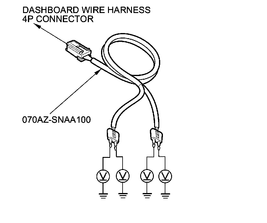 16. Connect the terminals of SRS simulator lead J to the SRS inflator simulator (2 Ohms connectors), and then connect SRS simulator lead J to the dashboard wire harness 4P connector.