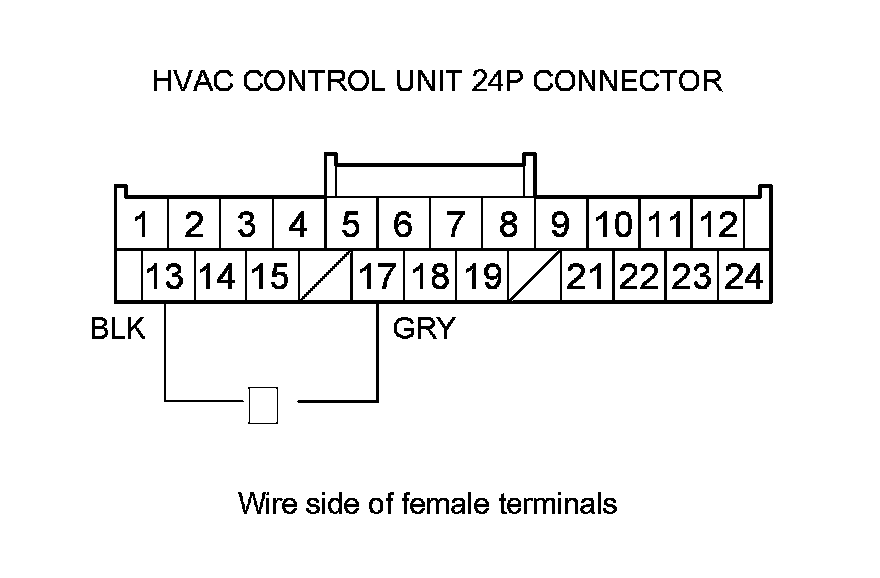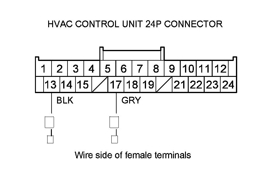 9. Check for continuity between HVAC control unit 24P connector terminals No. 13 and No. 17.