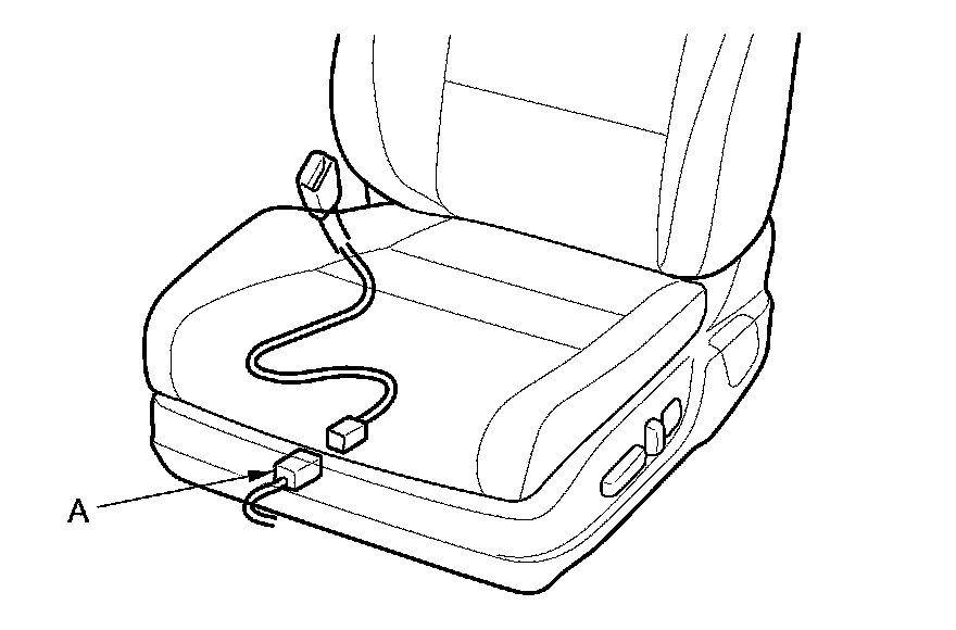 5. Disconnect the SRS floor wire harness 2P connector (A) from the driver's seat belt buckle switch 2P connector.