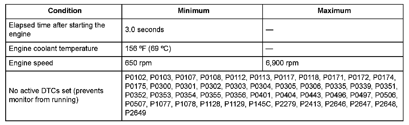 The difference between the amount of intake air measured by the MAF sensor and the amount of intake air calculated from the MAP sensor output is out of the normal area for at least 5.0 seconds.