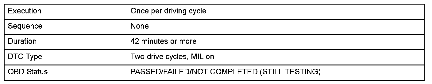 Monitor Execution, Sequence, Duration, DTC Type, OBD Status