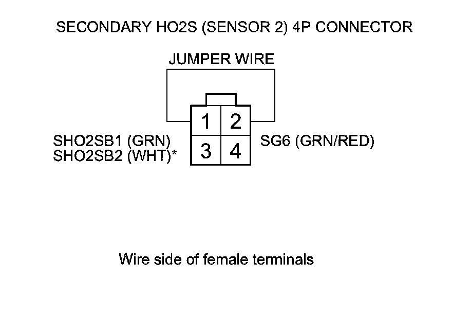 7. Connect secondary HO2S (Sensor 2) 4P connector terminals No. 1 and No. 2 with a jumper wire.