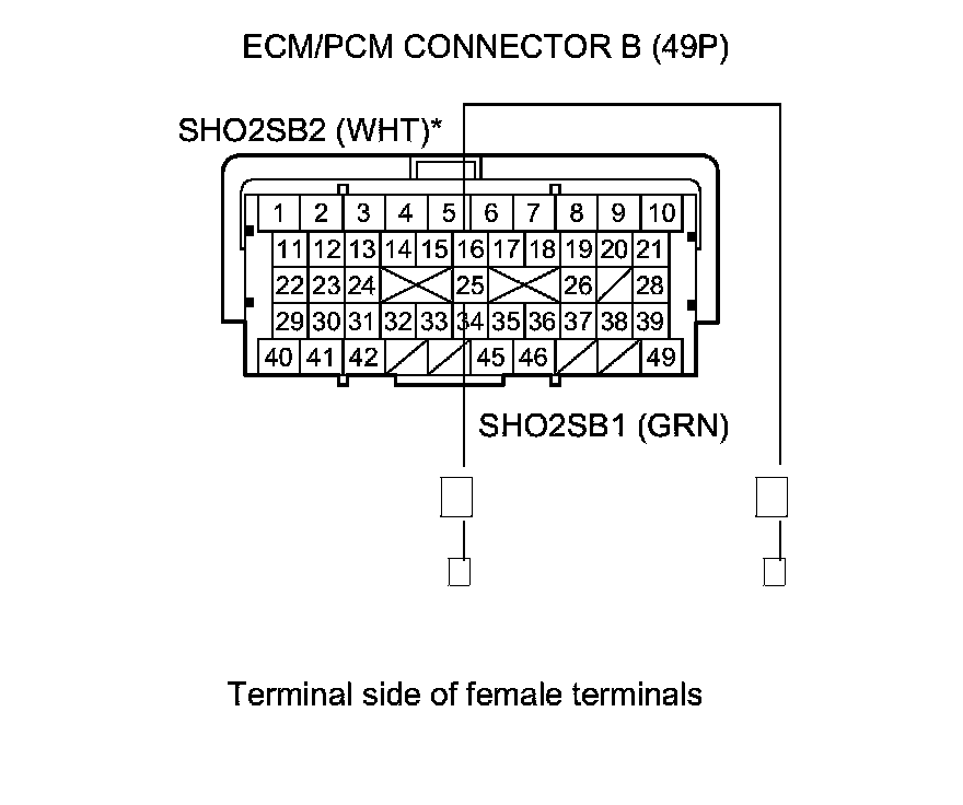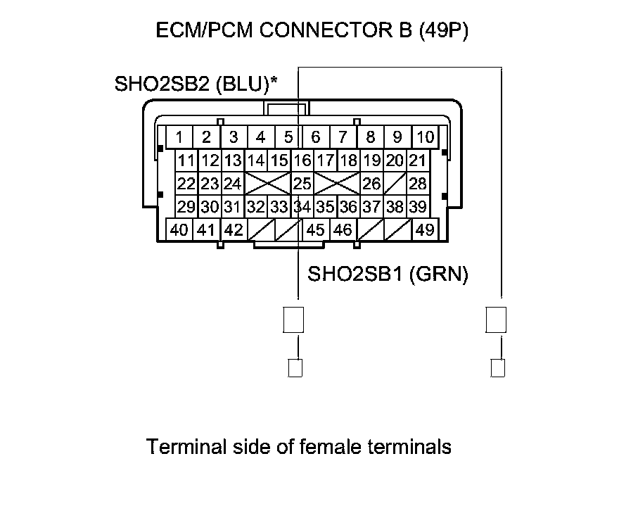Repair open in the wire between the ECM/PCM (B25 (B16)*) and secondary HO2S (Sensor 2), then go to step 21.