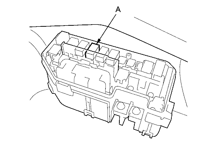 7. Remove the PGM-FI subrelay (A) from the under-hood fuse/relay box.