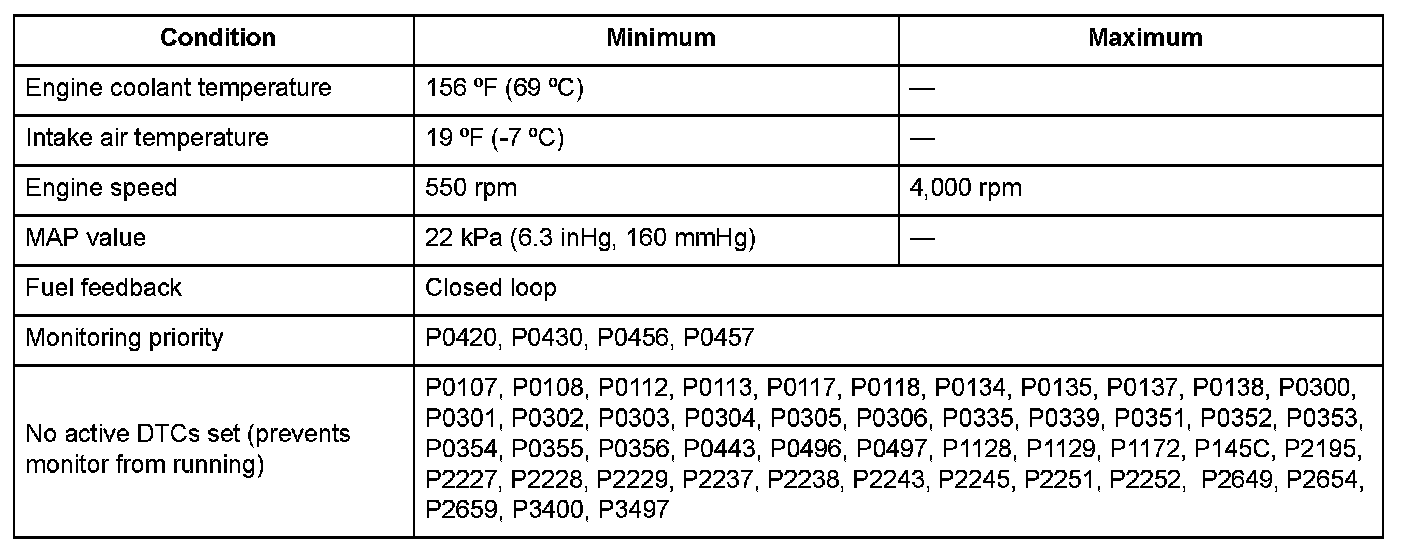 Monitor Execution, Sequence, Duration, DTC Type, OBD Status