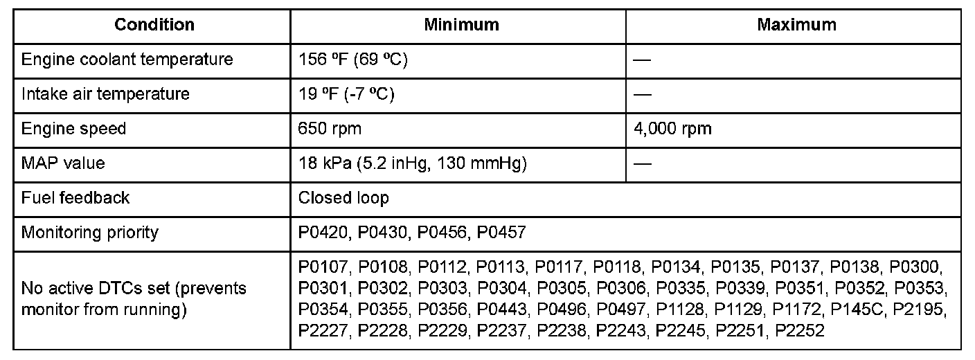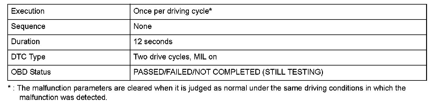 Monitor Execution, Sequence, Duration, DTC Type, OBD Status