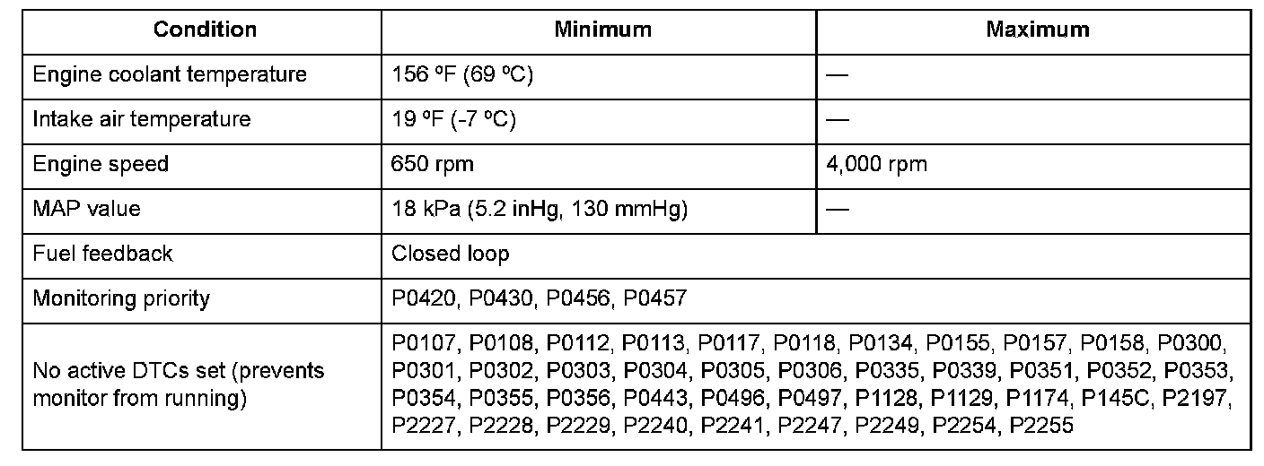 Monitor Execution, Sequence, Duration, DTC Type, OBD Status
