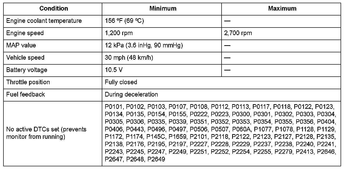 Monitor Execution, Sequence, Duration, DTC Type, OBD Status