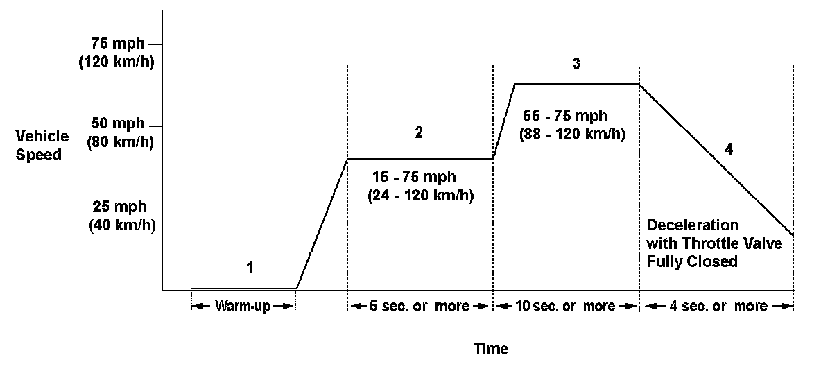 4. Decelerate with the throttle valve fully closed for at least 4 seconds.