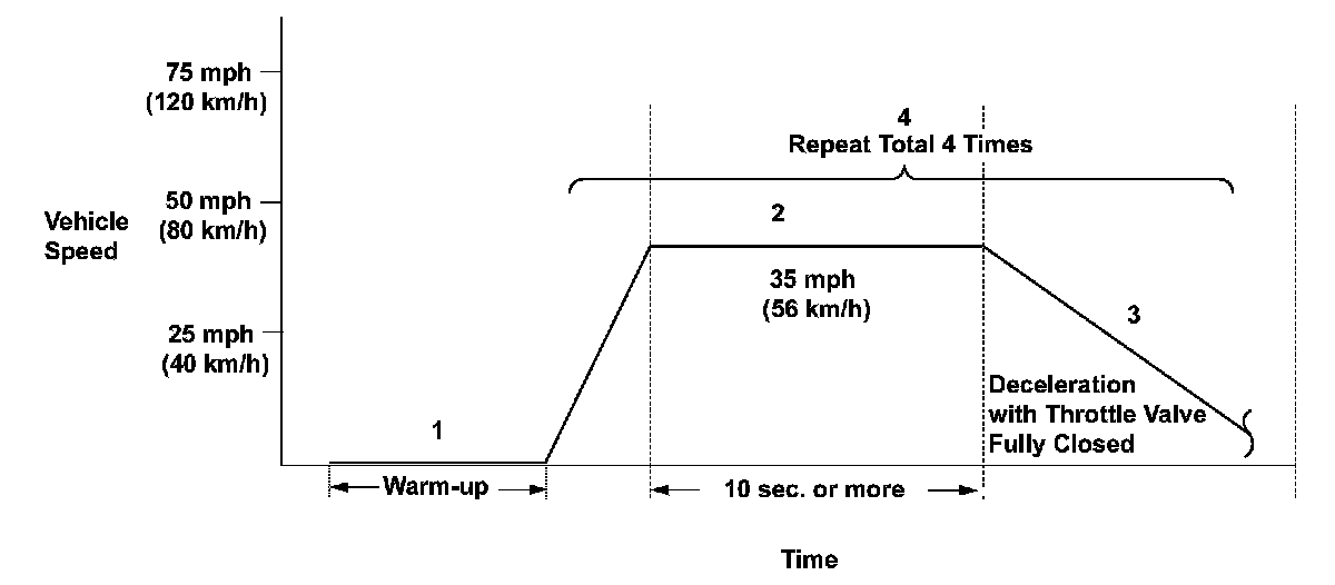 2. Drive the vehicle at a steady speed 35 mph (56 km/h) or more for at least 10 seconds.