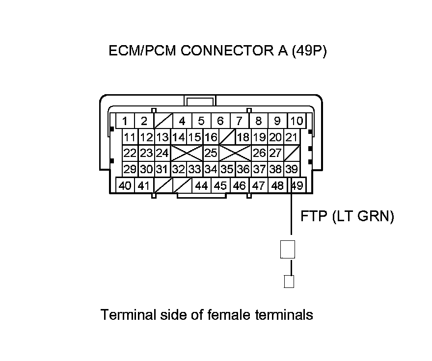 Check for poor connections or loose terminals at the FTP sensor and the ECM/PCM. If the ECM/PCM was updated, substitute a known-good ECM/PCM Initial Inspection and Diagnostic Overview, then go to step 36. If the ECM/PCM was substituted, go to step 1.