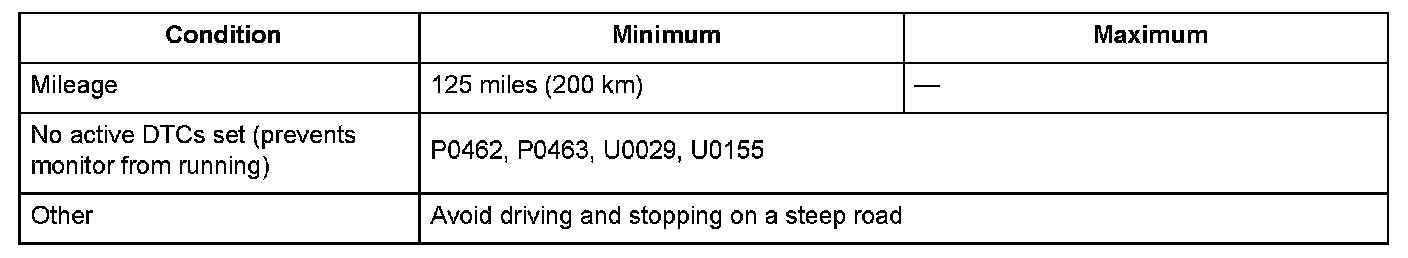 Drive for 125 miles (200 km) or more under Enable Conditions (see "Other") without refueling (turning the ignition switch to LOCK (0) is acceptable).