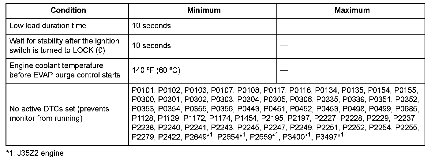 The output from the EVAP canister purge valve is 0.3 kPa (0.08 inHg, 2 mmHg) or more for at least 10 seconds.